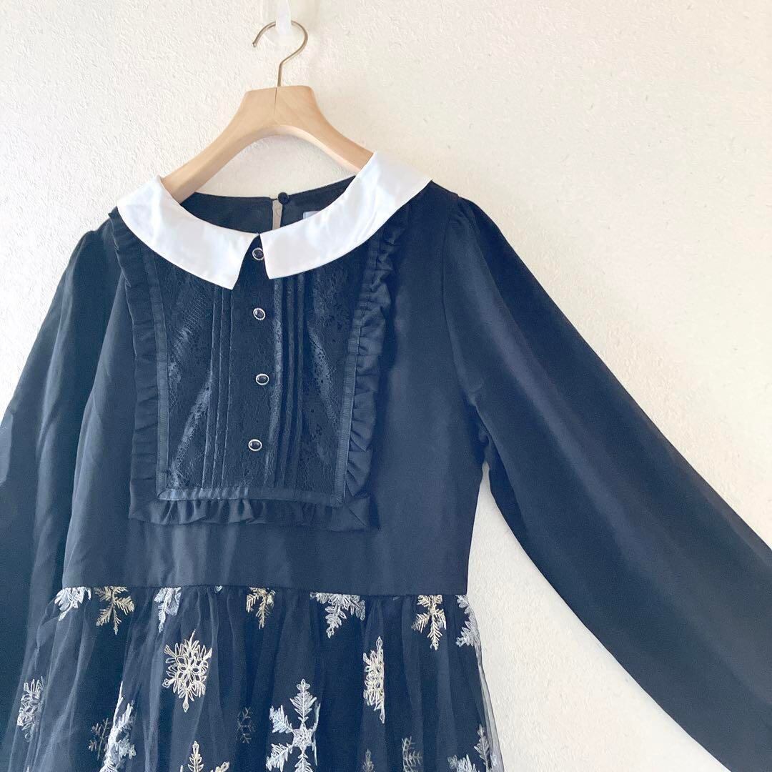 axes femme POETIQUEの雪の結晶ラメ刺繍長袖ワンピースです。